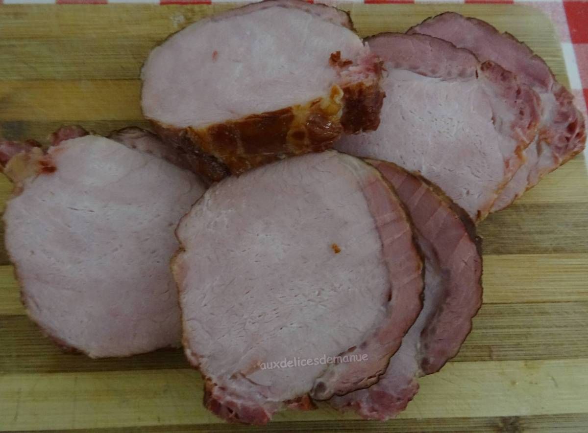 J'aime beaucoup le rôti de porc fumé, il est plein de goût, et plus moelleux qu'un rôti de porc non fumé. Et puis, j'aime bien cette couleur rosée de la viande.... peut-être mon côté fille