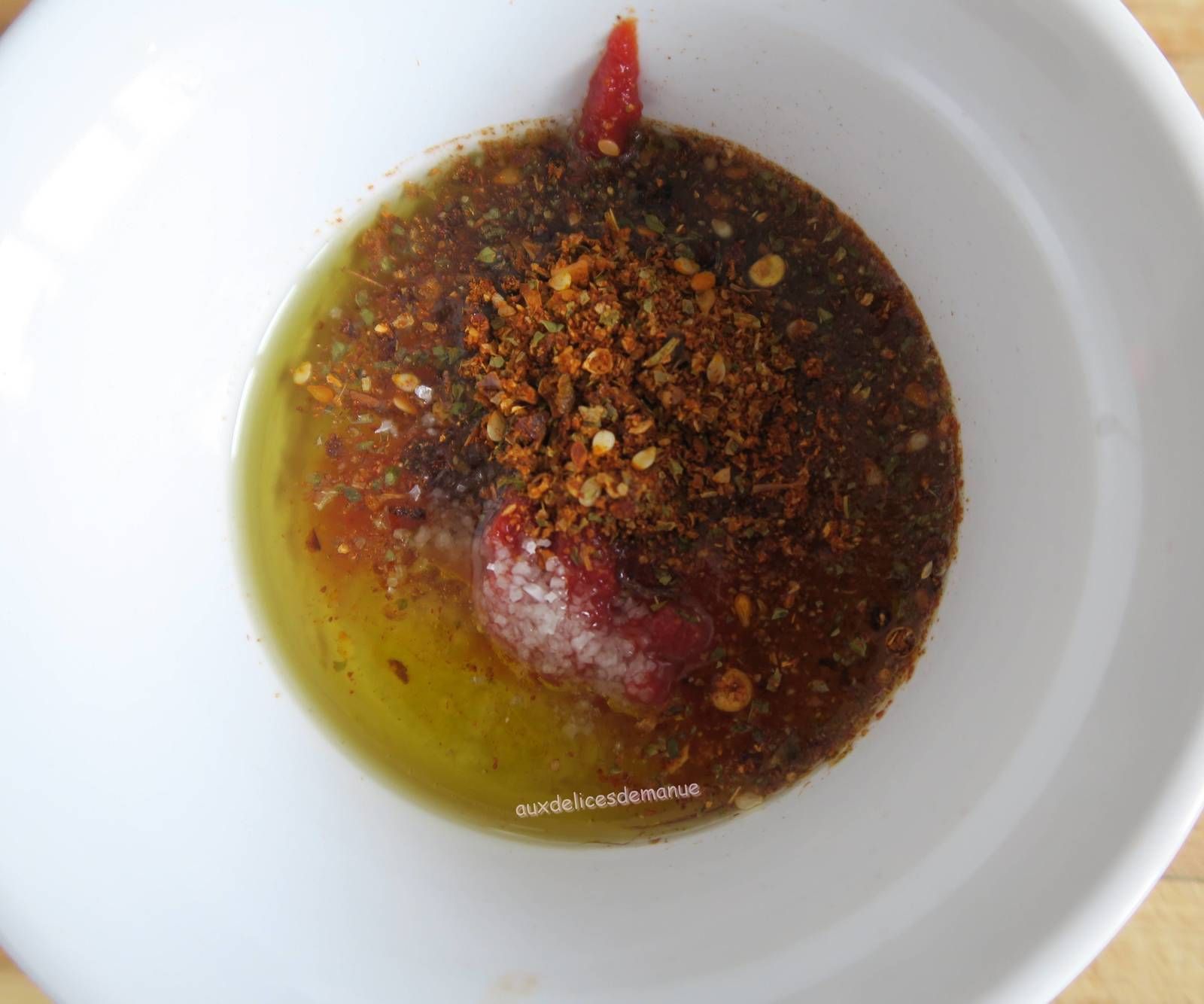 Ne poivrez pas la marinade, les épies chili sont déjà épicées, mieux vaut poivrer dans l'assiette si nécessaire.